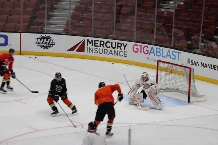 This is me defending the net at practice with the Anaheim Ducks.
